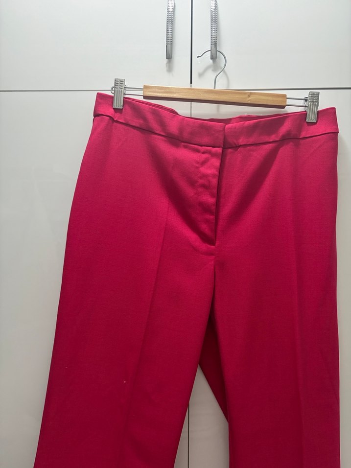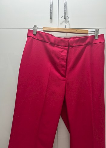 H&M marka olan pantolon hiç kullanılmamıştır rengi koyu bir pembedir esneme payı yoktur paçaları ispanyol paça şeklinde gelmektedir bütün detaylar fotoğraflardadır