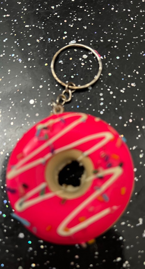 Renkli pembe, kabartmalı tasarıma sahip bu anahtarlık pop kültürden ilham alır ve rock punk ile grunge punk havası taşır.