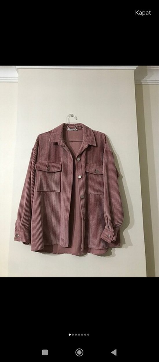 Pembe kadife kumaştan, uzun kollu ve düğmeli, oversize kesim kadın gömleği. Notlu yaka ve kapaklı cepleriyle günlük sokak stiline uygun. iki defa giyinmiştir hiçbir sıkıntısı yok
