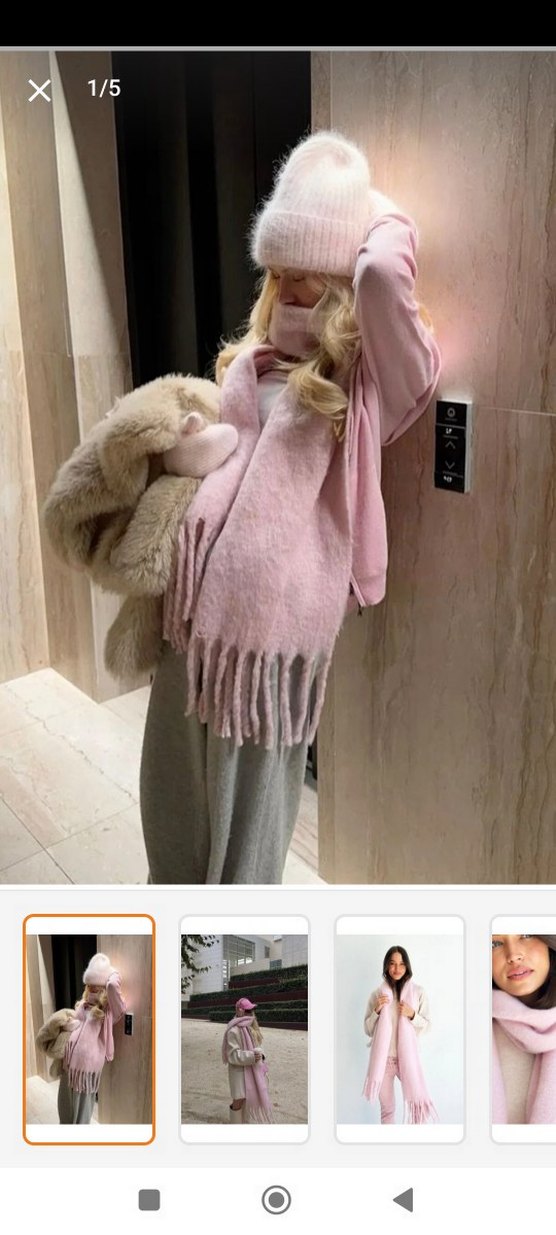 Pembe renkli, kürklü detaylara ve püsküllü uçlara sahip triko kadın atkısı. Rahat ve şık bir görünüm için ideal.