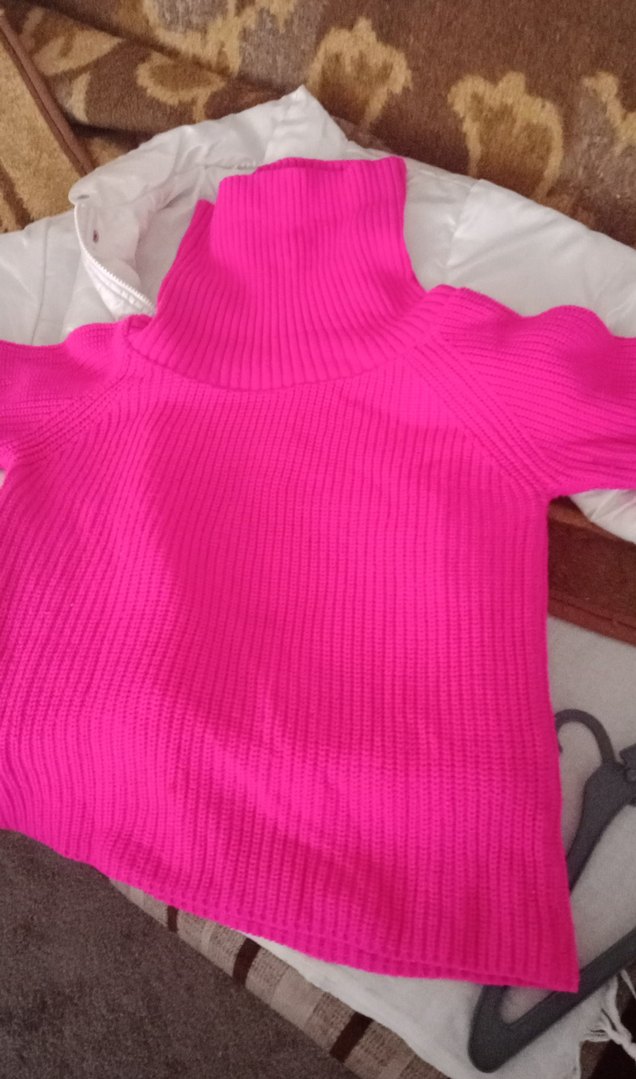 Pembe, balıkçı yaka ve uzun kollu, triko dokulu, rahat kesim kadın kazak. Günlük kullanıma uygun, renkli ve sıcak tasarım. iki kol altı arası 53 cm(esnektir).boy:60 cm..