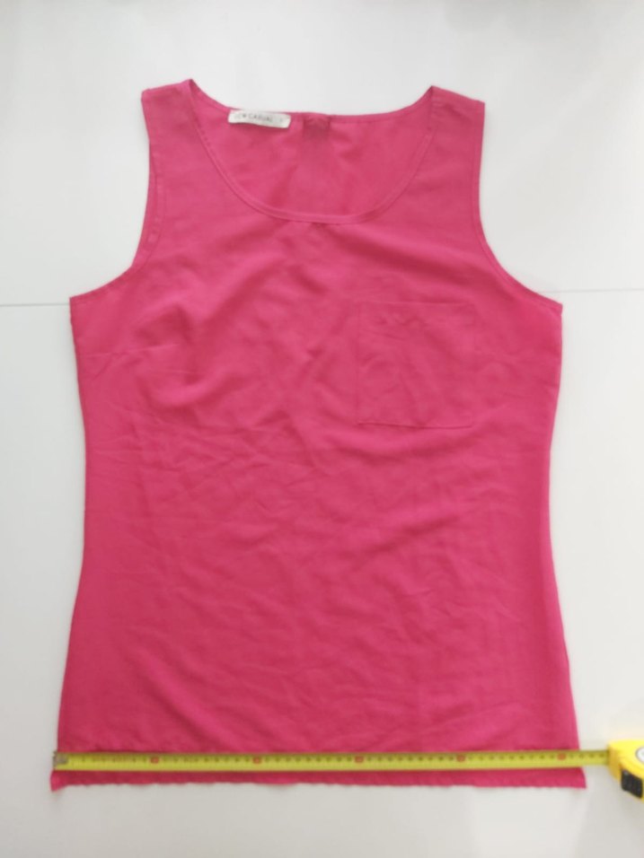 Canlı pembe renkli, yuvarlak yakalı ve kolsuz, vücuda oturan kadın basic atlet. Yumuşak sentetik kumaştan üretilmiştir. Spor ve günlük kullanıma uygundur. ♀️