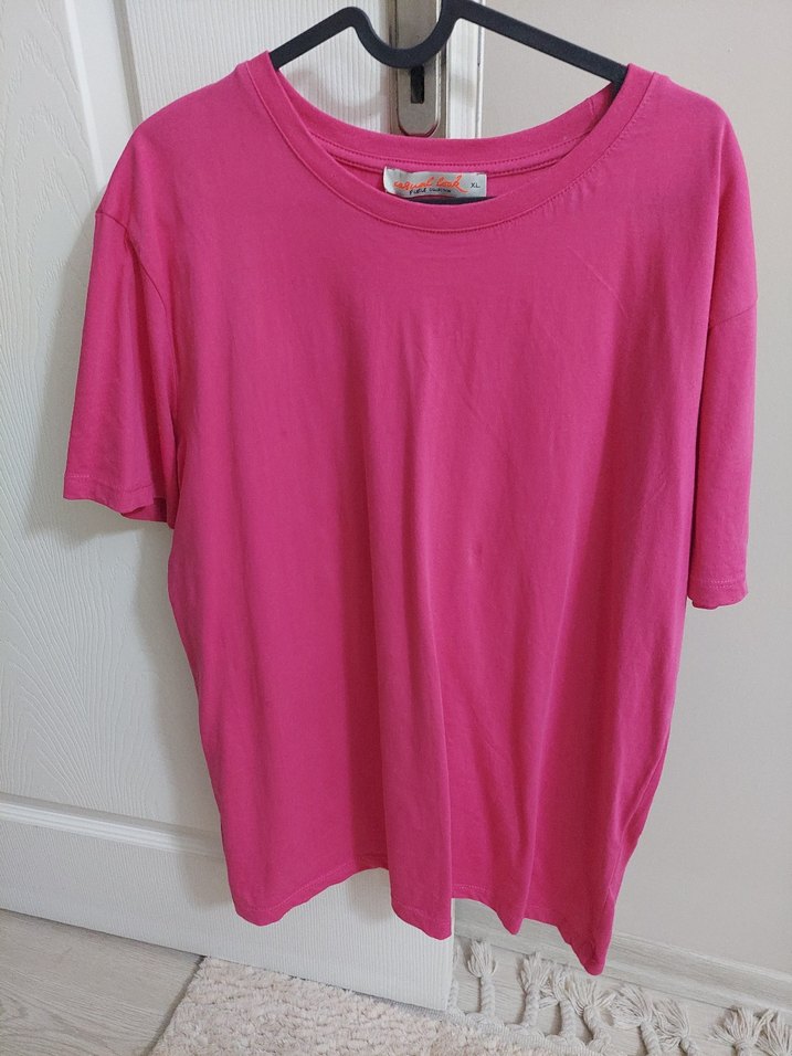 Pastel pembe renkte, kısa kollu ve yuvarlak yaka kadın tişörtü. Pamuklu kumaştan, rahat ve günlük sokak stili için uygun.