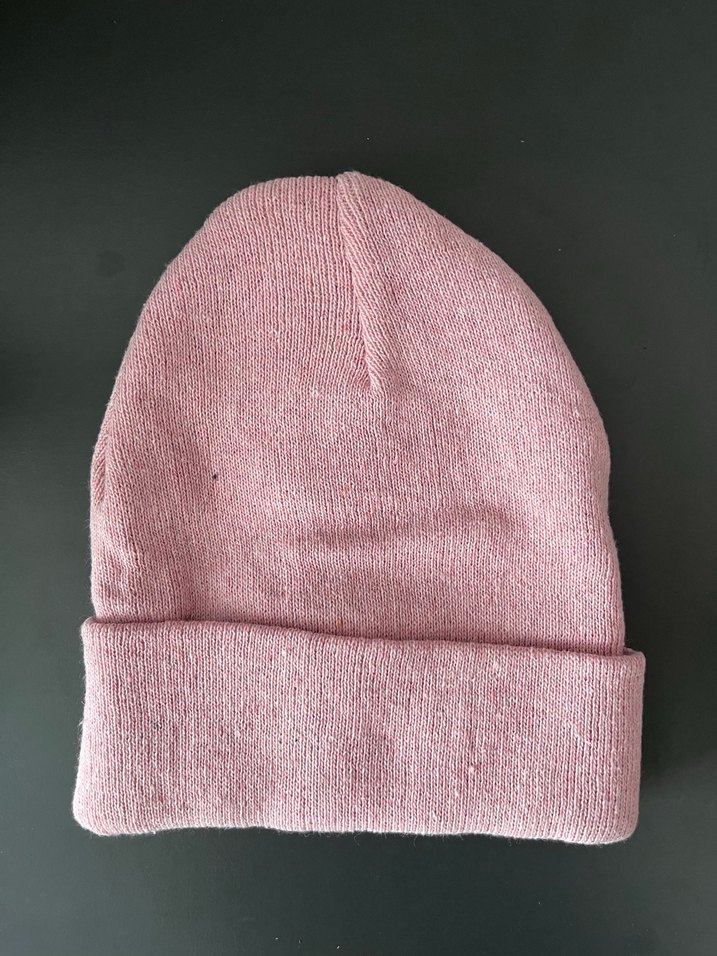 Pastel pembe renkli, örgüden yapılmış bu bere, rahat ve sade bir tarz sunar.