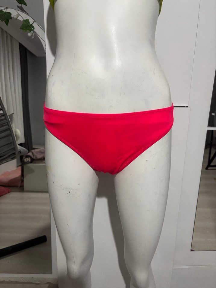 Pembe renkte, vücuda oturan bikini altı, sade ve ince askılı tasarımıyla cesur ve çağdaş bir plaj görünümü sunar. Athleisure tarzı sevenler için ideal.