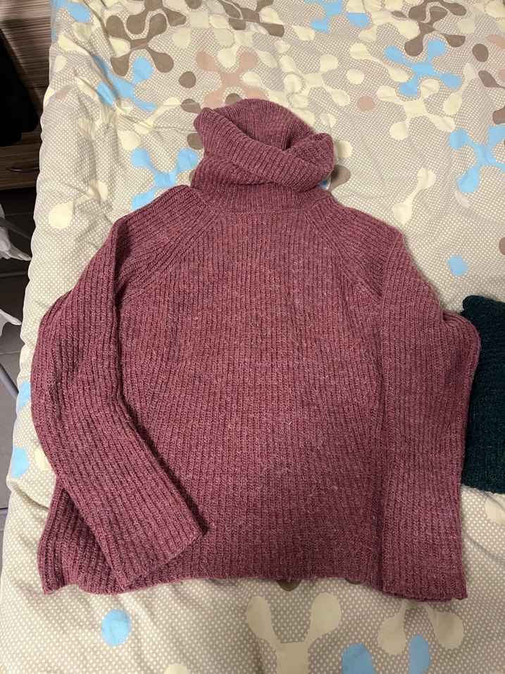 Prmbe renkli, boğazlı ve uzun kollu, rahat kesim örme triko kazak. Günlük kullanıma uygundur.