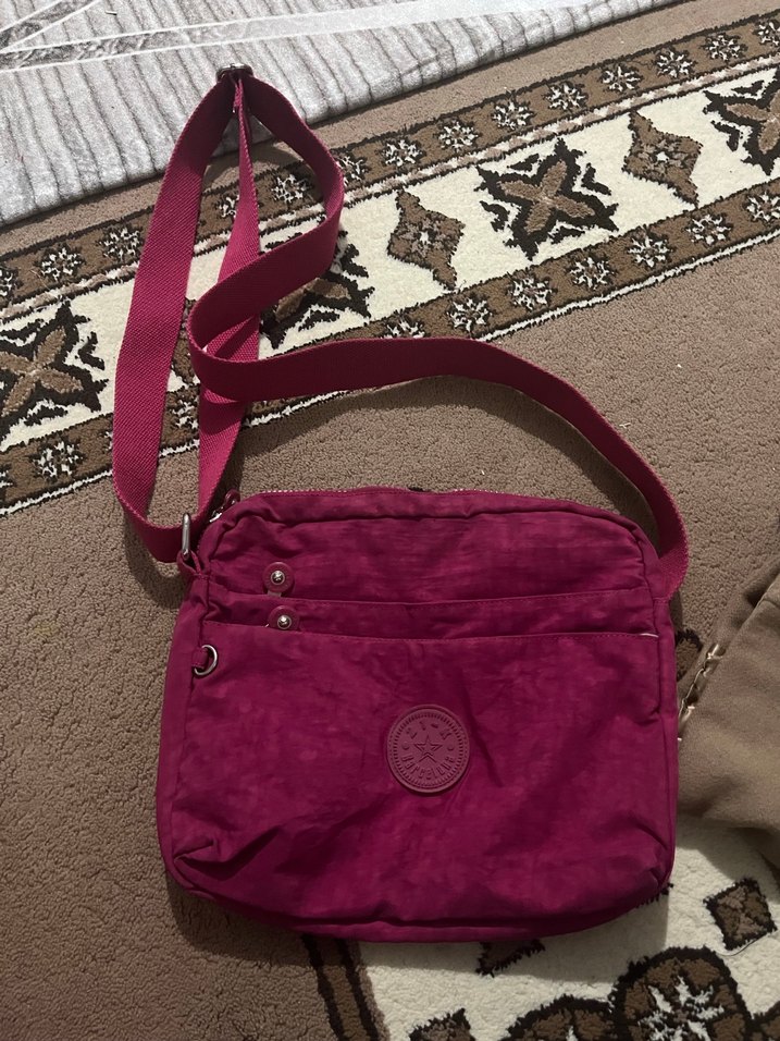 Pembe renkli, fermuarlı çapraz çanta. Sentetik kumaştan üretilmiş, minimalist ve sokak tarzına uygun, günlük kullanıma ideal.