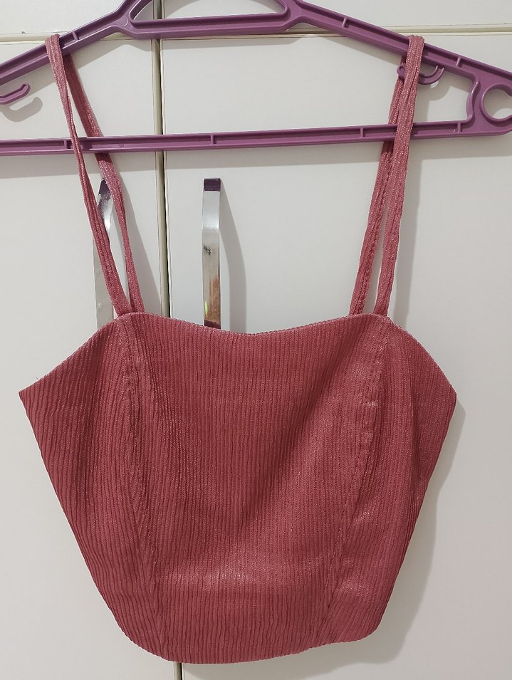 Pembe renkte, ince askılı ve desen içermeyen mini uzunlukta kadın crop.