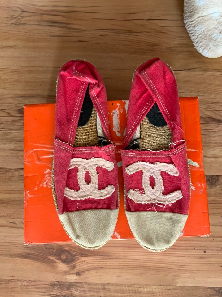 Dolgu topuklu pembe kadın espadriller, renkli baskılı tasarımı ve kauçuk tabanıyla günlük kullanımda rahat ve şık bir görünüm sunar.