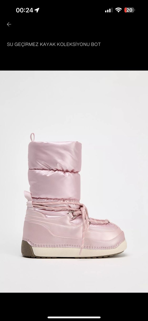 Zara 37 numara kayak koleksiyonu bot. Pastel pembe renkte, kemerli ve dolgu topuklu kadın botu. Yumuşak sentetik kumaştan, günlük kullanım için uygun. Yeni ve etiketlidir.