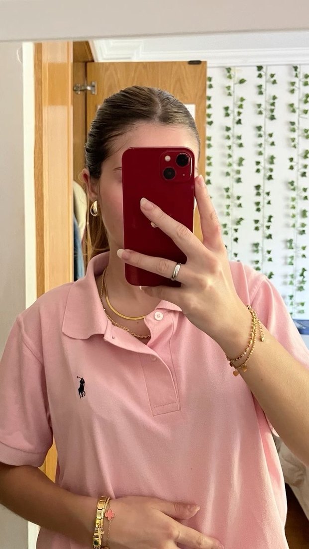 Pembe pastel renkte, yakalı ve bol kesim kadın-erkek polo tişört. Kısa kollu, yumuşak ve ipeksi dokulu, rahat ve şık bir görünüm sunar.