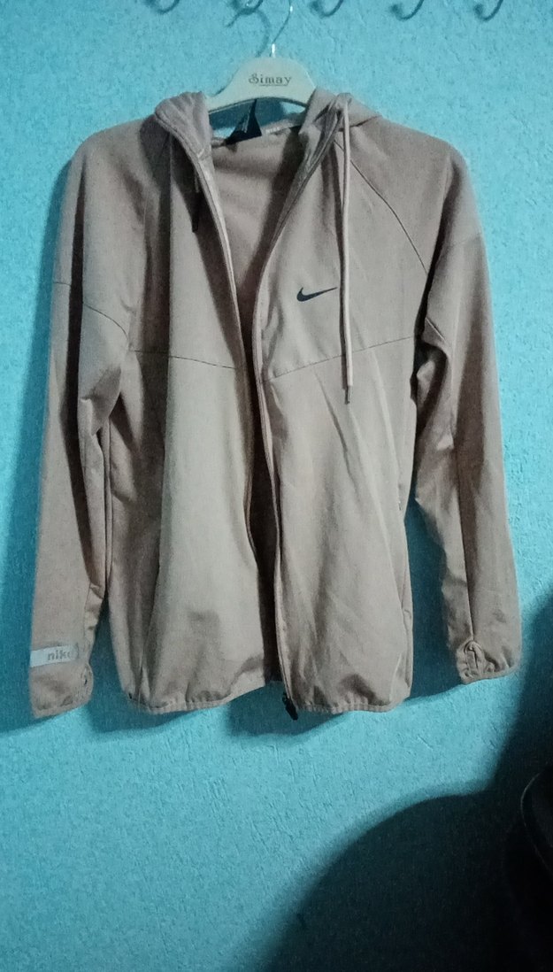 pembe renkli, fermuarlı, Spor kadın ceket. Uzun kollu ve kumaştan, günlük rahat kullanıma uygun. Nike logosu bulunur. ️