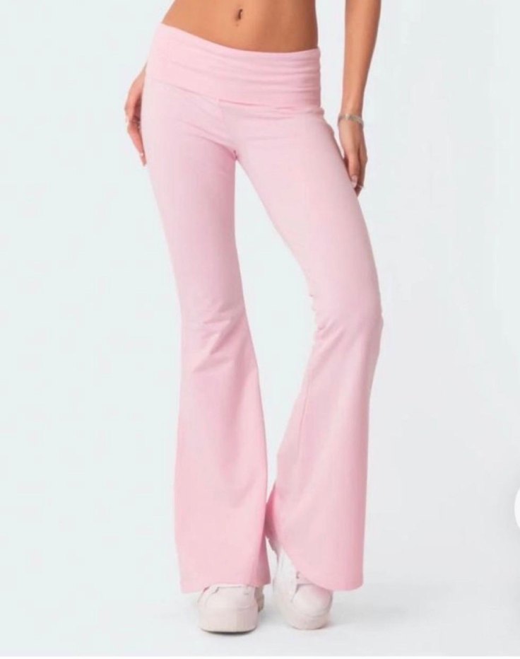 Pembe renkte, midi boy, ispanyol paça kesime sahip, spor tarzda kadın pantolonu. Rahat ve şık, günlük kullanıma uygun sentetik kumaştan üretilmiştir.