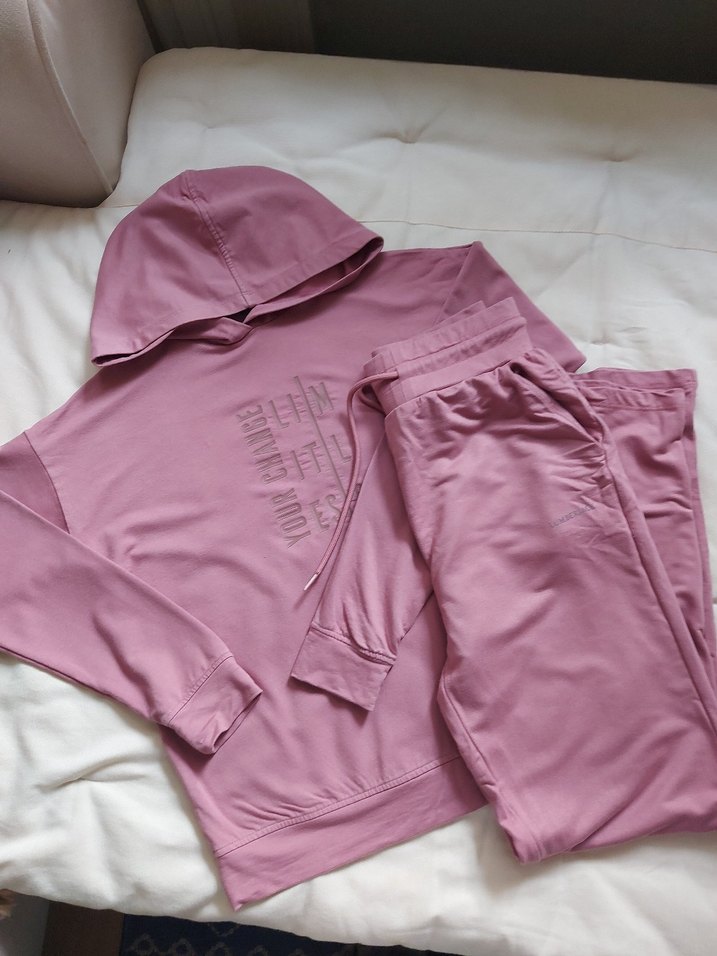 kapüşonlu ve uzun kollu, bol kesim kadın eşofman takımı. Pantolonun da leke var foto çektim. Rengi çok koyu değil ona gore alim yapınız. Xs Beden ama 50 kiloya kadar olur.