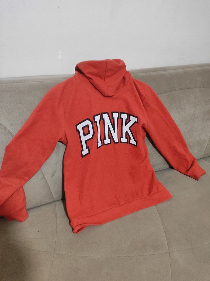 Pembe renkte, bol kesim, uzun kollu kadın sweatshirtü. Önünde "PINK" baskısı ve fermuarlı detay vardır. Yumuşak ve sıcak kumaştan üretilmiştir.