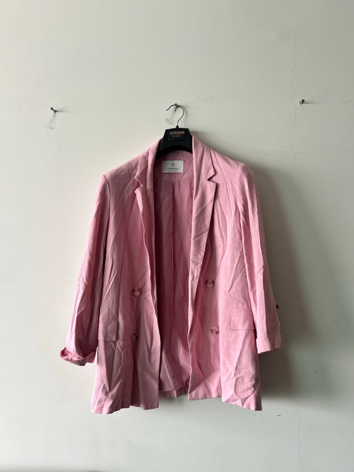 Pembe keten ceket. Hiç giyilmedi.
