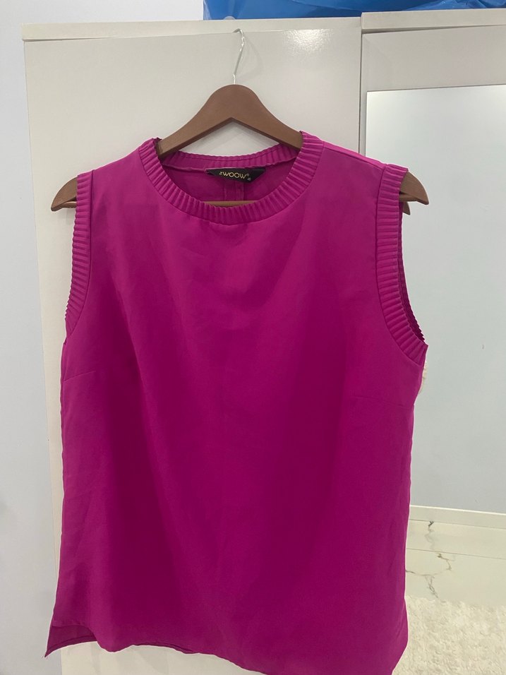 Pembe Kadın Kolsuz Triko Süveter
