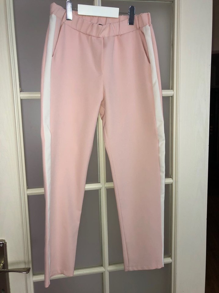 Pembe renkli,, regular fit kadın kumaş pantolon. Yanlarda yırtmaç detayı ve pastel tonlarda, sokak tarzına uygun rahat bir model. Günlük kullanım için uygundur.