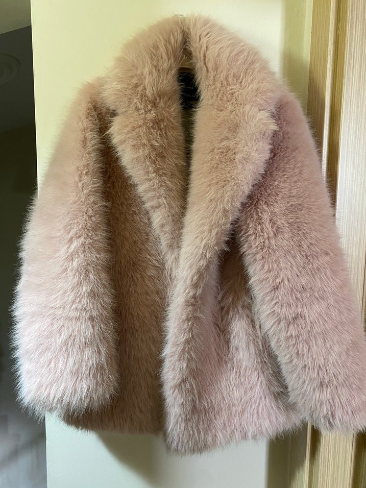 pembe Kadın Midi Boy Kürk Detaylı Ceket mango kürk