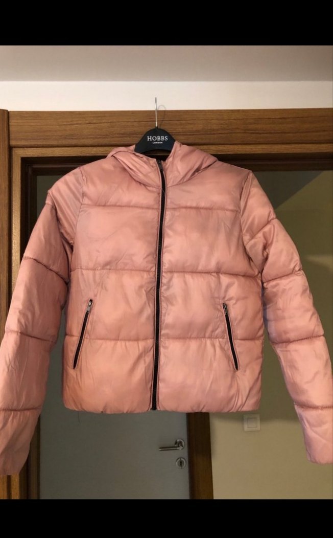 Pastel pembe renkli, fermuarlı ve kruvaze yakalı, sentetik kumaştan yapılmış, dar kesim kadın midi kışlık mont. Sokak modasına uygun, günlük kullanım için ideal. ❄️