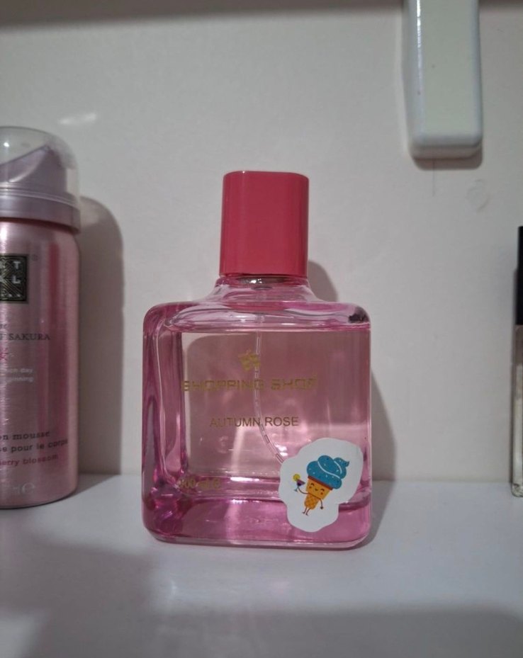 Pembe şişede, sonbahar gülü kokusuna sahip kadın parfümü, yumuşak ve zarif bir koku sunar.