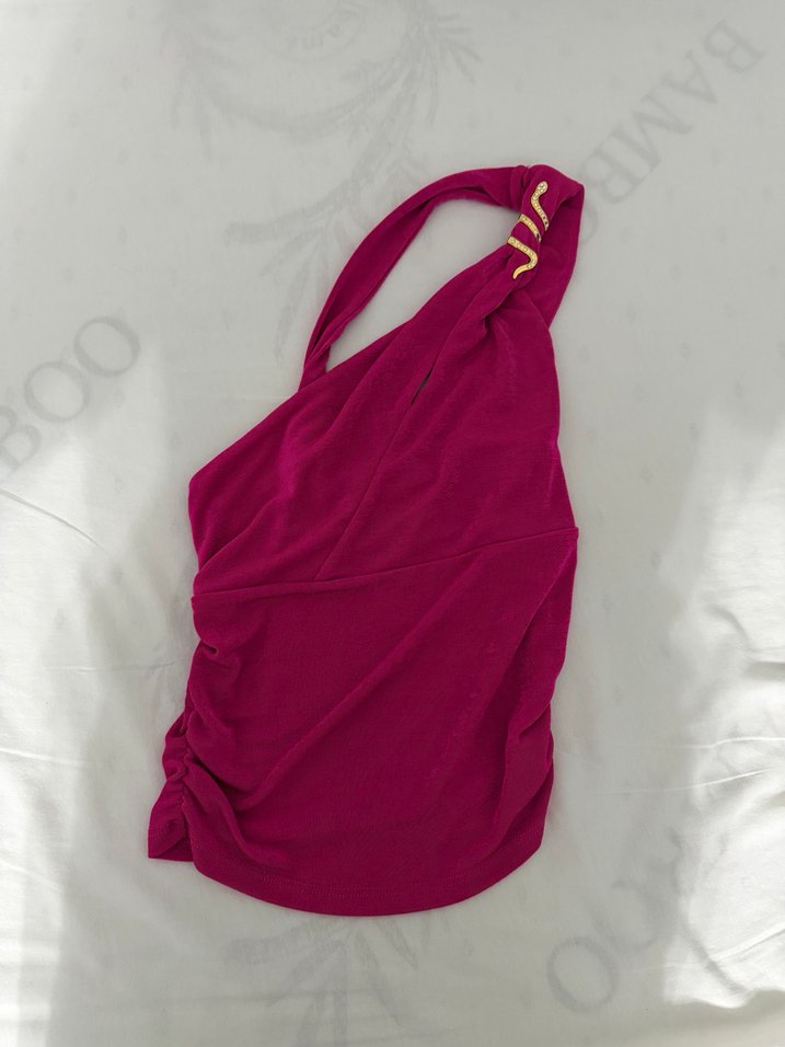 Hiç giyilmedi pembe yılan aksesuarlı bluz hiç giyilmedi