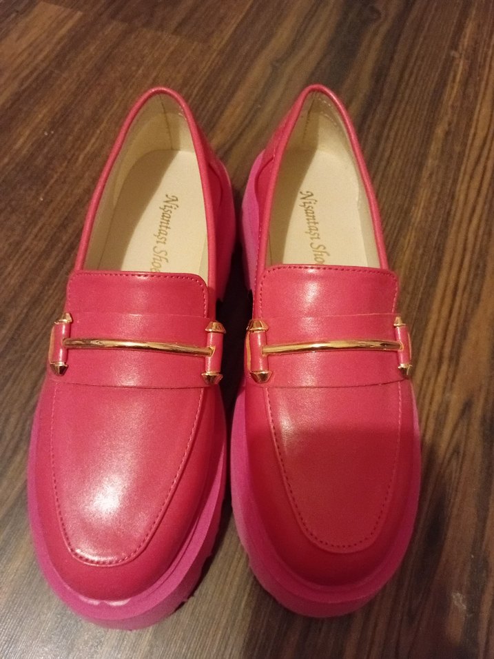 Pembe Kadın Platform Topuklu Tokalı Loafer