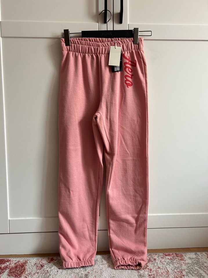 Pembe renkli, rahat kesim ve normal boyda, yumuşak ve sıcak kumaştan kadın eşofman. Lastikli bel ve paçalarla günlük kullanıma uygun şık bir parça.