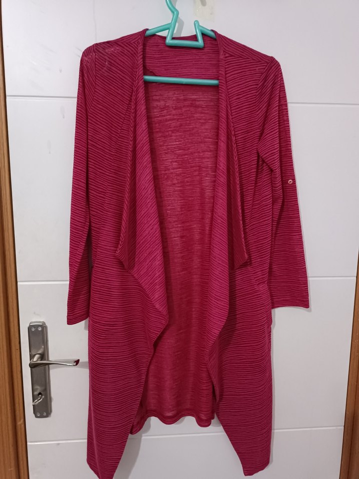 Pembe renkli, uzun kollu, salaş kesim ve drapeli detaylara sahip notched lapel yakalı midi hırka. Yumuşak sentetik kumaştan üretilmiştir, günlük kullanım için uygundur.Yanlarda cepleri mevcut. Alt kısım asimetrik kesim.Giyince o kadar güzel duruyor ki ! Pembe seviyorsanız dolabınızda bulunsun. Beyaz bir atletle her şekilde kombinlenir