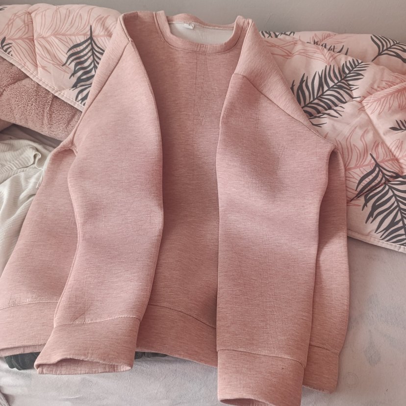 Pembe renkli, salaş kesim, yuvarlak yaka ve uzun kollu sweatshirt. Drapeli tasarımı ve yumuşak sentetik kumaşıyla günlük rahatlık sunar.