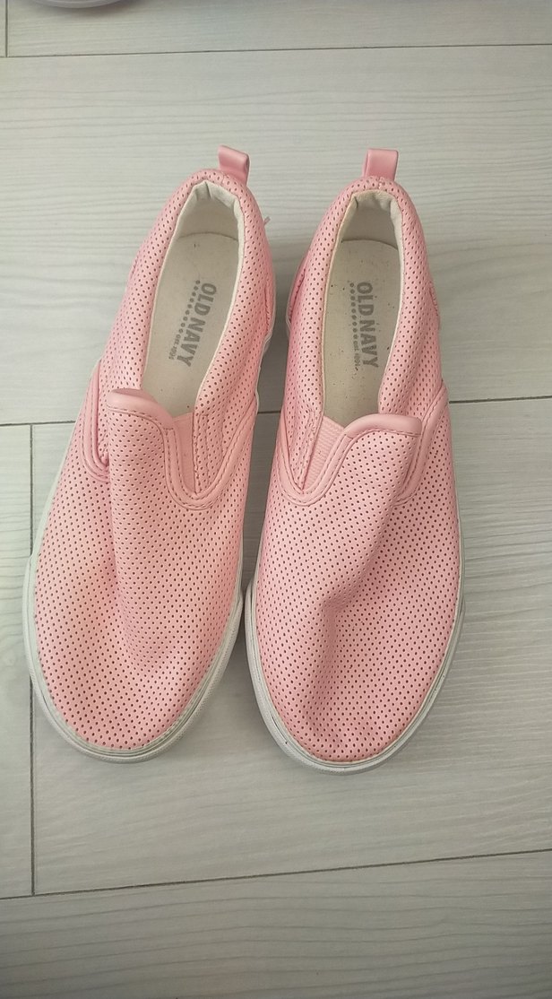 Old Navy pembe, delikli ve düz tabanlı kadın spor ayakkabısı, yumuşak kauçuk malzemeden üretilmiştir ve günlük kullanıma uygundur.