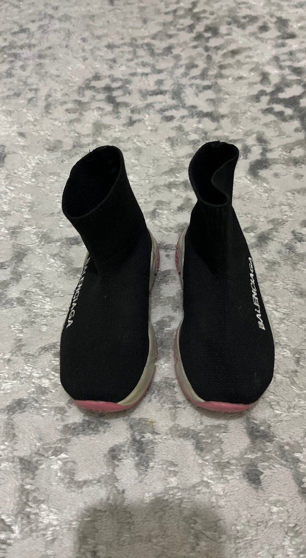 Stiletto topuklu, bantlı, koyu pembe kadın spor ayakkabısı. Kauçuk tabanlı, sokak stili ve açık hava için uygun.