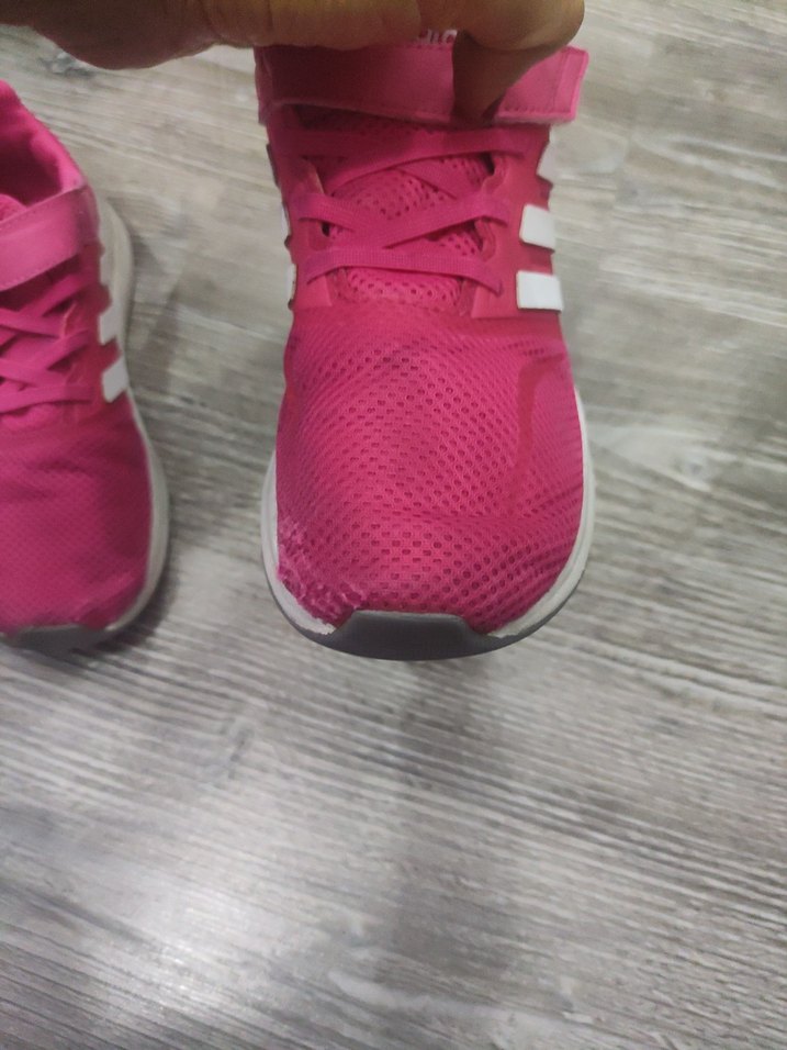 Velcro ve bağcıklı pembe kadın spor ayakkabısı, yumuşak kauçuk tabanlı ve ince topuklu, desensiz ve canlı renkte.
