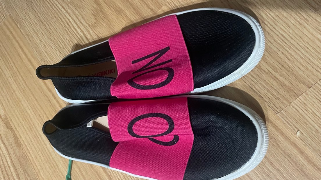 Koyu pembe baskılı üst kısmı, wedge topuklu ve cırt cırtlı bantlı kadın spor ayakkabısı. Kauçuk tabanlı, athleisure ve normcore tarzında.