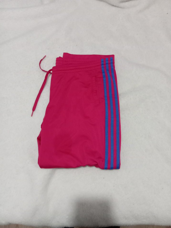Pembe renkli, elastik bel bantlı, yanları renkli şeritli, sentetik kumaştan yapılmış kadın spor eşofman altı. ♀️ Adidas marka orjinal eşofman altı xl beden
