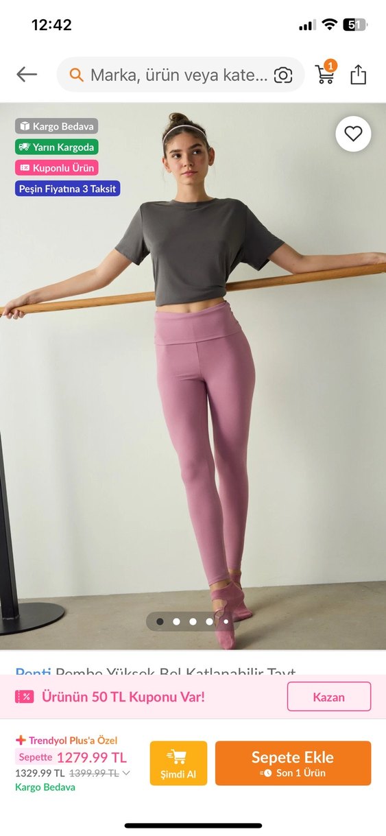 Pembe renkte, yüksek bel, normal midi boyda, yumuşak sentetik kumaştan yapılmış kadın spor taytı. Spor ve günlük kullanıma uygun. Katlanır belli penti tayt. Yanlış beden aldığım için satıyorum hiç giyilmedi etiketli