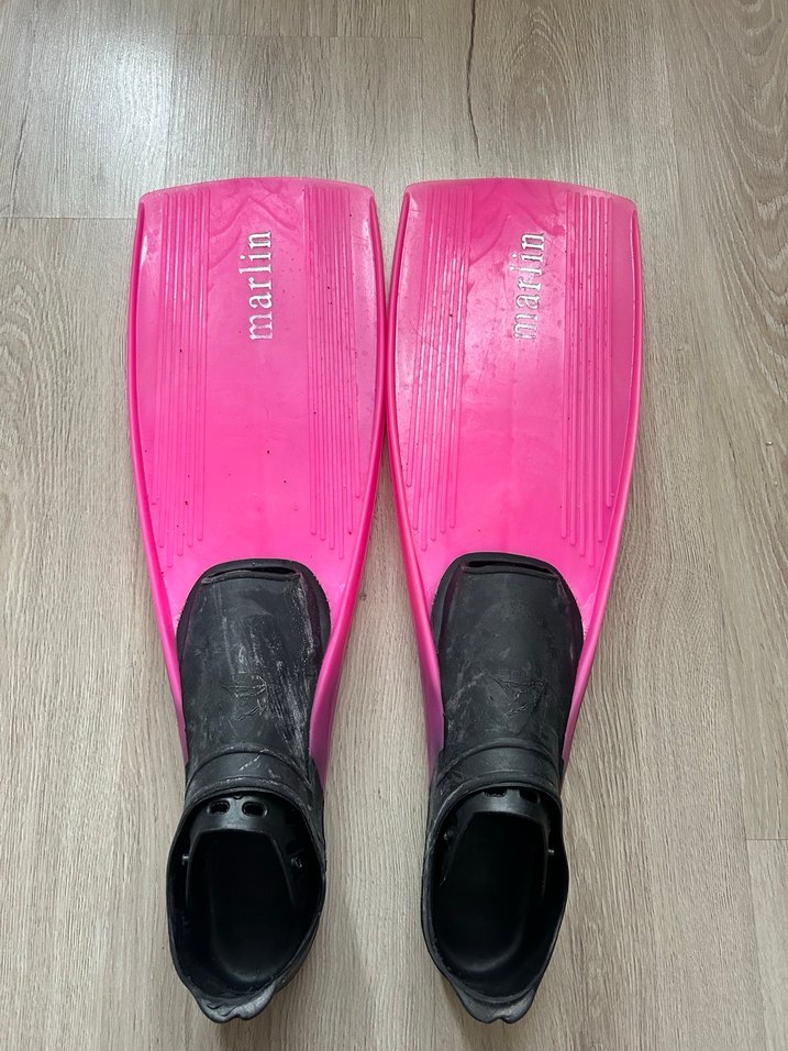Canlı pembe renkte, kauçuk malzemeden yapılmış kadın su paleti, Velcro bantlıdır ve plajda kullanım için uygundur. Moda ve karşı kültür tarzını yansıtır.