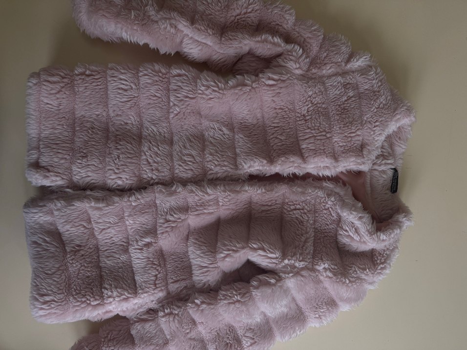 Pembe pastel renkli, uzun kollu, yakalı ve suni kürklü kadın ceketi. Rahat ve sıcak dokusu ile günlük kullanıma uygundur. Bir defa giyildi