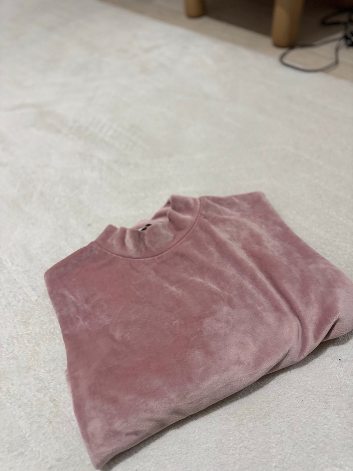 Pastel pembe renkte, yuvarlak yakalı ve uzun kollu kadın sweatshirtü. Yumuşak ve sıcak kumaştan, rahat kesimli, günlük kullanıma uygun şık ve rahat bir modeldir. Crop tarzı yarım modeldir belde bitiyor ufak bir lekesi var fotoğrafta gösterdim başka hiçbir sorunu yok 1 kere giyildi