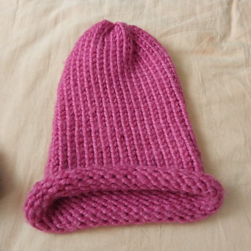 Yumuşak iplikten örülmüş, canlı pembe renkte kadın triko bere, rahat ve sade bir tarz sunar. Temel kullanıma uygundur.