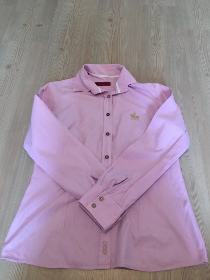 Pembe renkli, uzun kollu, düğmeli ve yakalı kadın gömleği. İpek gibi dokusuyla rahat bir kesime ve normal uzunluğa sahiptir, günlük sokak stiline uygundur.