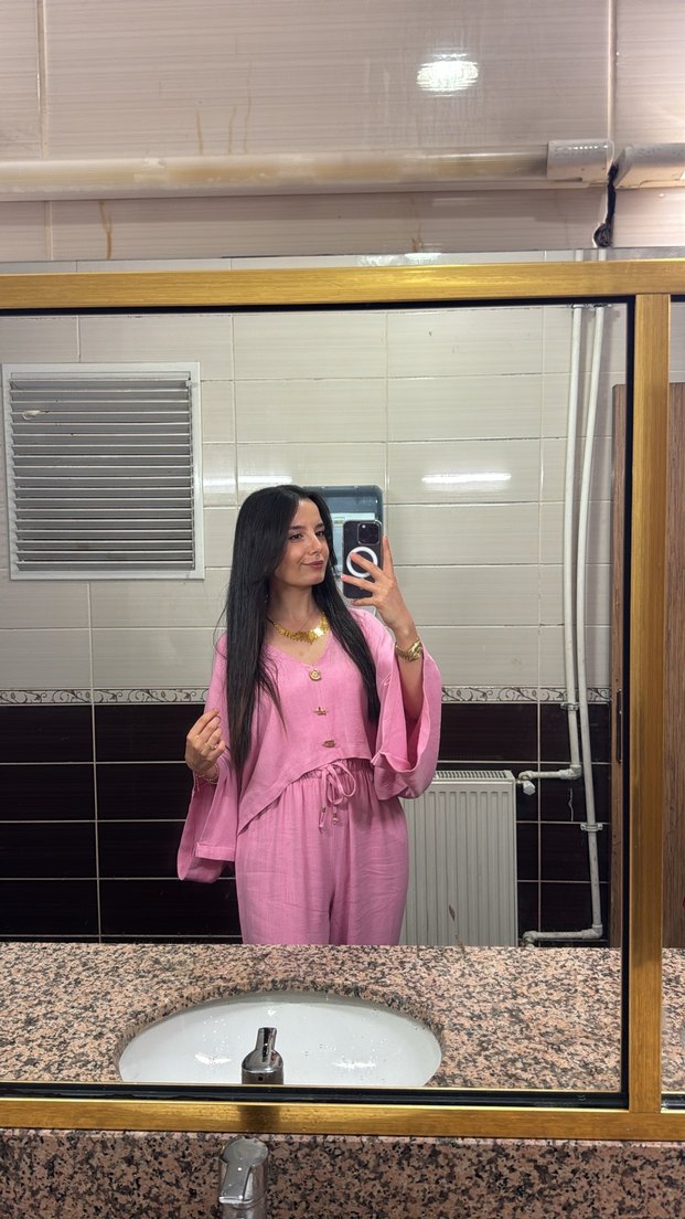 Pembe Kadın Uzun Kollu Salaş Takım