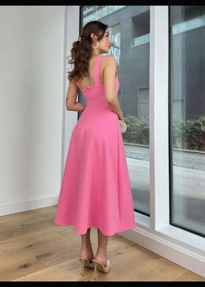 Pembe kalın askılı elbise