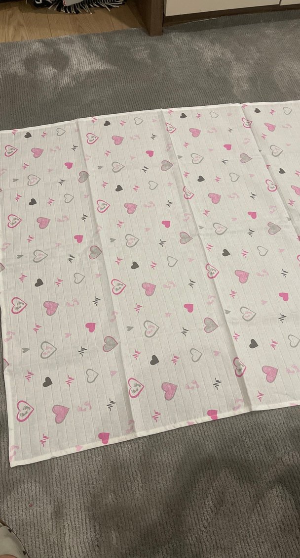 Bu çocuk battaniyesi, yumuşak sentetik kumaş üzerine pastel pembe ve gri kalp desenleriyle tasarlanmıştır. Hafif ve rahat bir yapıya sahiptir.
