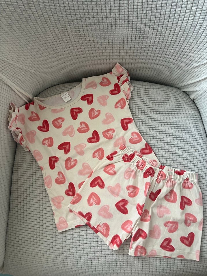 Kısa kollu, fırfırlı detaylı, pastel pembe kalp desenli kız bebek takımı. Üst ve şort yumuşak kumaştan üretilmiştir. 3-4 yaş