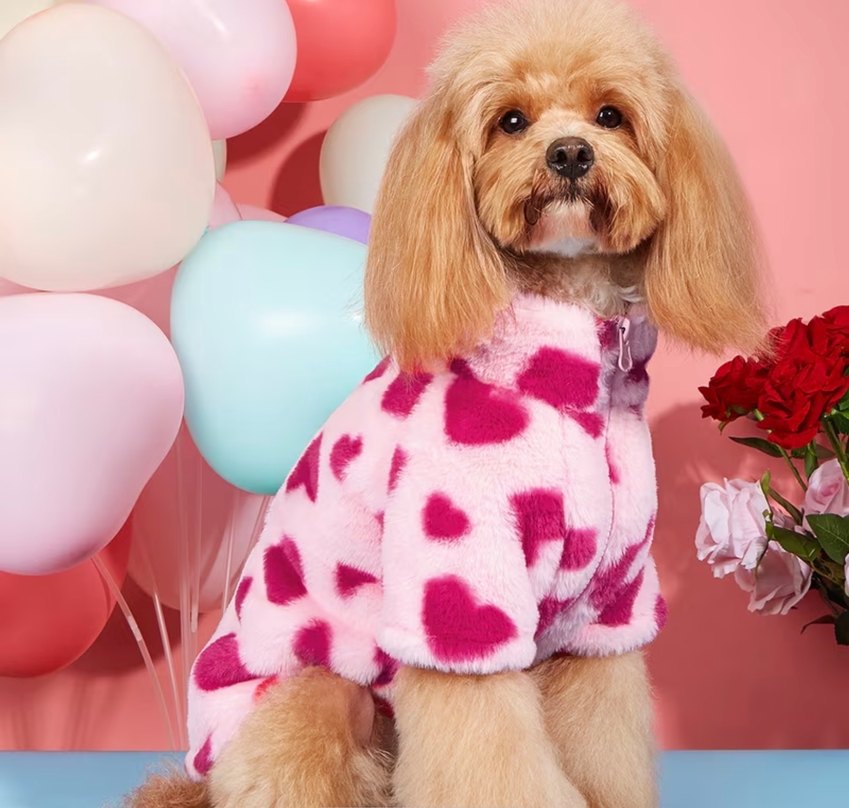 Pembe Kalp Desenli Kürklü Köpek Kıyafeti