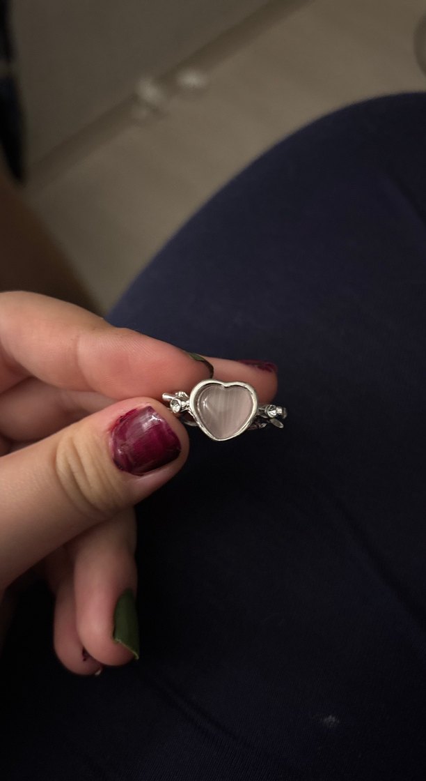 Pastel pembe kalp taşlı, düğmeli detaylı minimalist kadın yüzük. Romantik gece ve rock punk tarzına uygun. ayarlanabilir markası yoktur