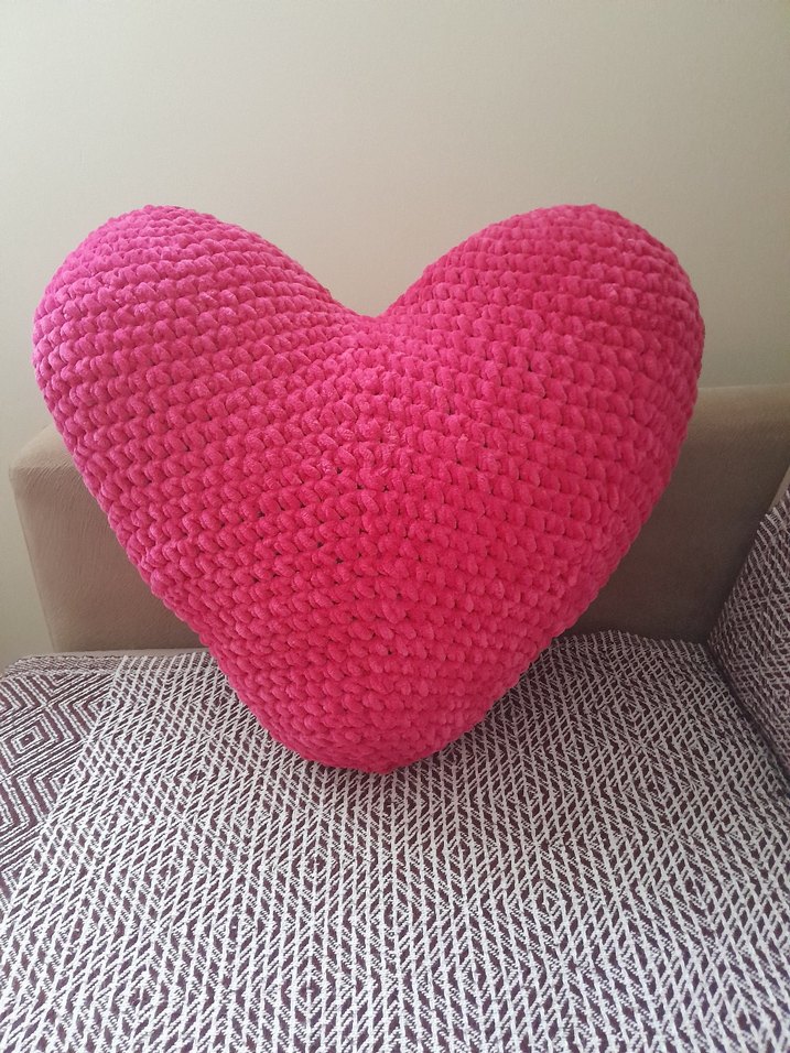 Doku yüzeyli, renkli pembe kalp şeklinde yumuşak yastık, ortama sıcaklık katmak için uygun.