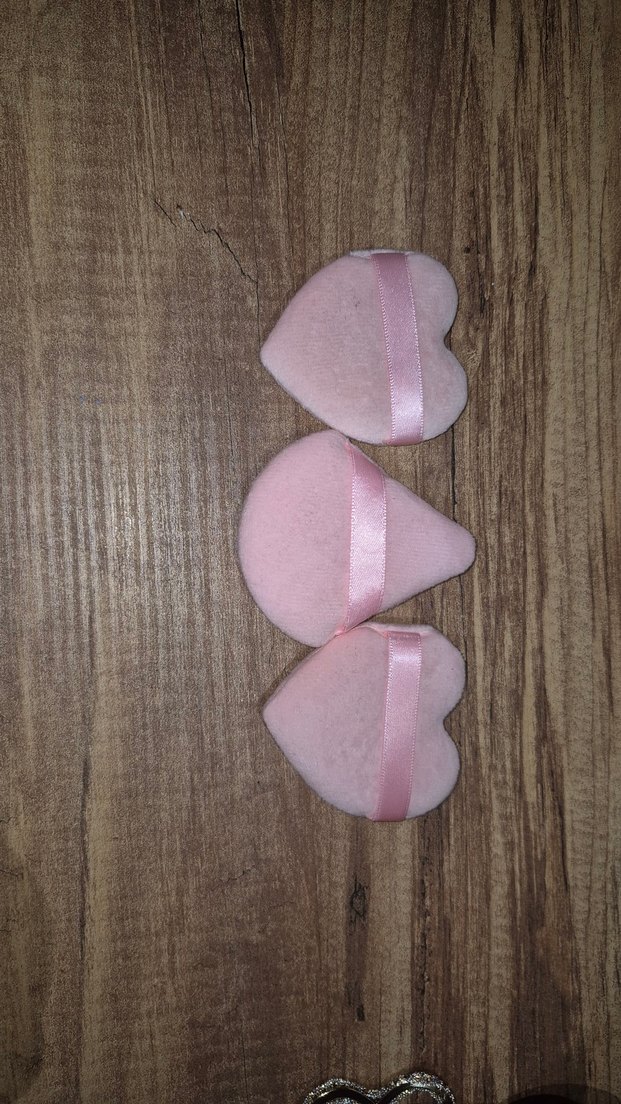 Pastel pembe renkli, kalp ve damla şekillerinde, yumuşak dokulu makyaj süngerleri, kolay kullanım için kurdele tutacaklı. biraz tozlanmış ama hiç kullanmadım iyi fiyst yazıyorum ihtiyacım yok