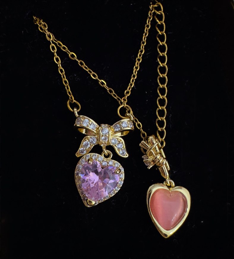 Pembe Kalp ve Fiyonk Detaylı Zincir Kolye